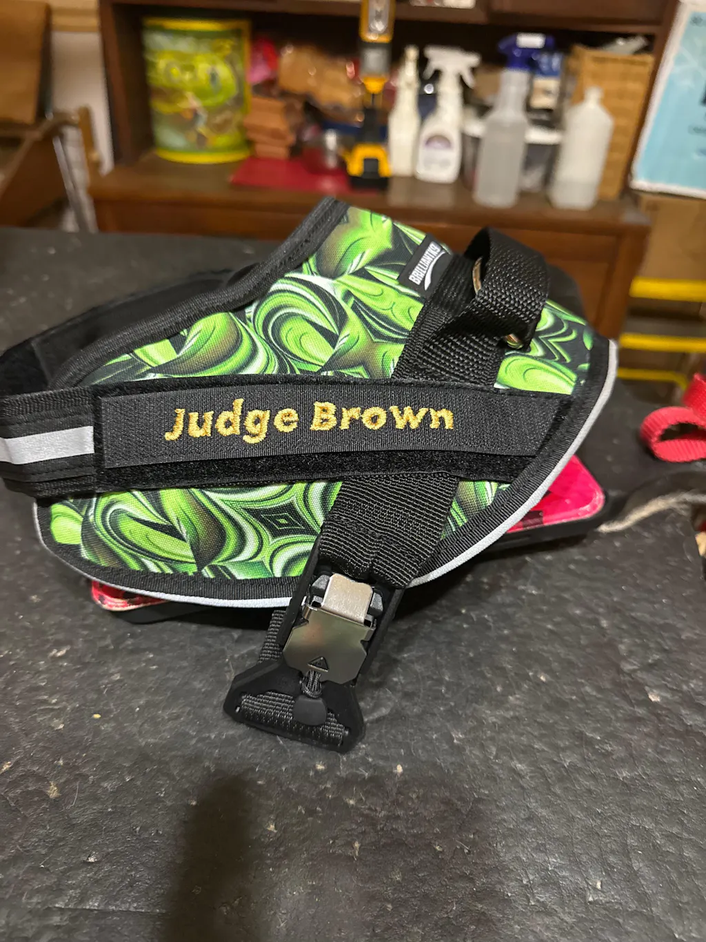 Love Brilliant K9 harnesses! I used the online processing and they fit my big boy beautifully! It is absolutely everything I expected. Thank you for your service in sizing him properly. The patches are perfection!